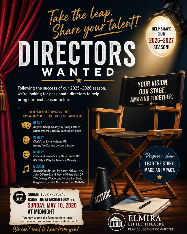 Elmira Little Theater is committed to fostering a love for the arts in our community. Nestled in Elmira, where the vibrant seasons inspire creativity, we focus on delivering memorable experiences. Our approach is rooted in collaboration and passion, ensuring each production is a testament to our dedication to the arts.